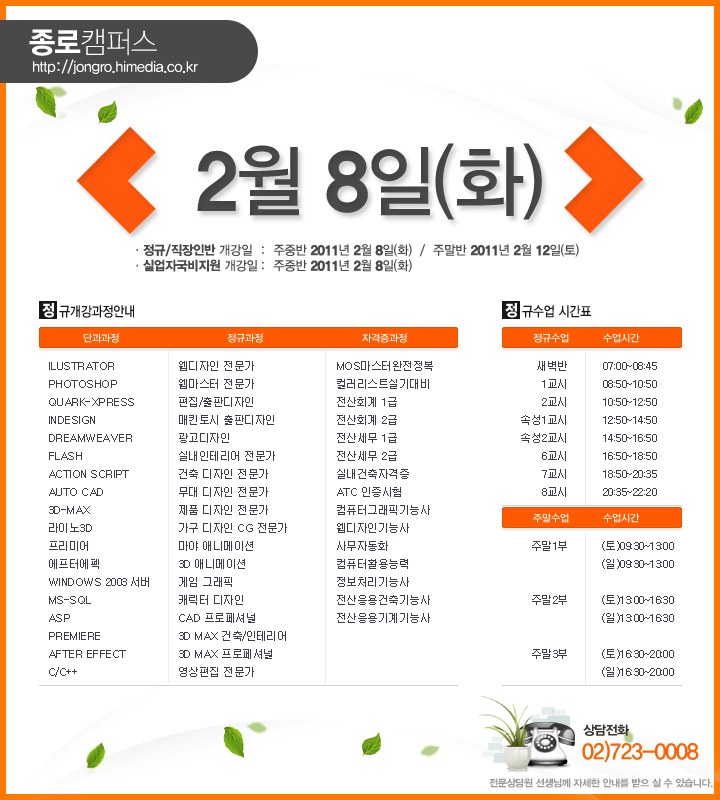 [정규개강] 2011년 2월 정규개강안내