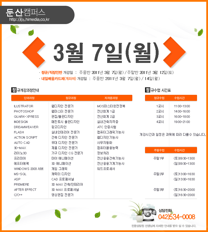 [정규개강] 2011년 3 정규개강 개강안내