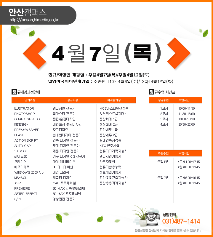 [정규개강] 2011년 4월 안산캠패스 정규개강안내