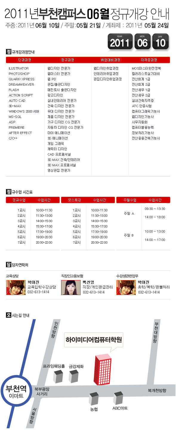 [정규개강] 2011년 06월 부천캠퍼스 개강안내