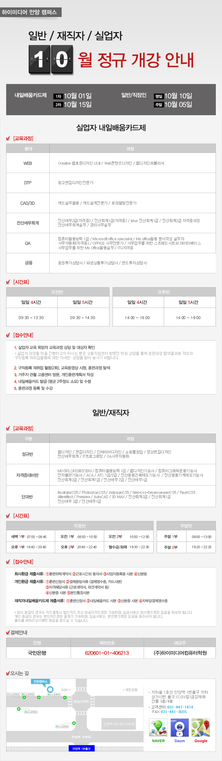 10월 개강일정 안내입니다.