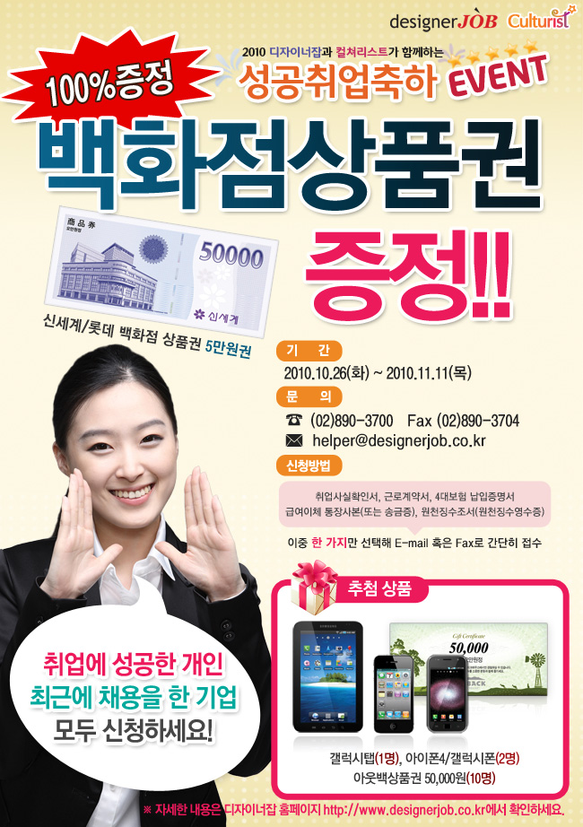 - EVENT 상품 : 지원자 전원 백화점 상품권(신세계/롯데 5만원권)