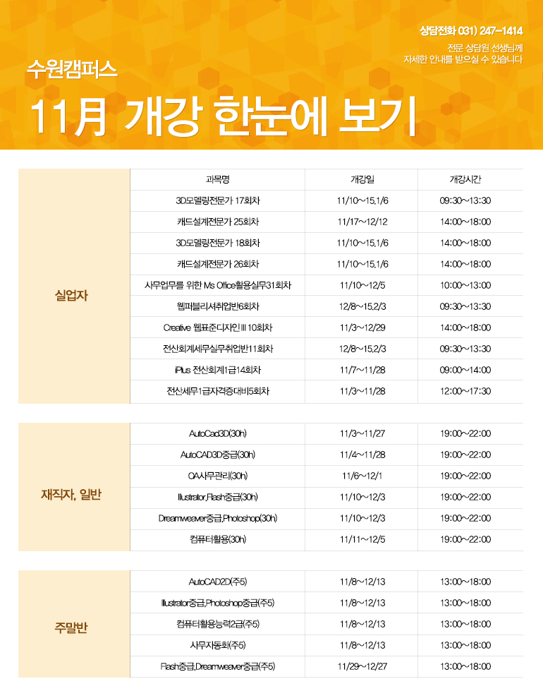 11월 개강안내