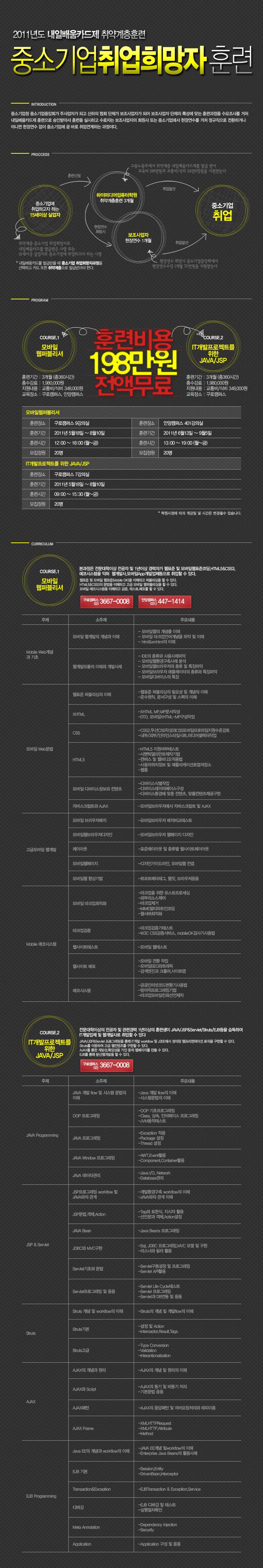 2011년 내일배움카드제 취약계층훈련 중소기업취업희망자 훈련안내